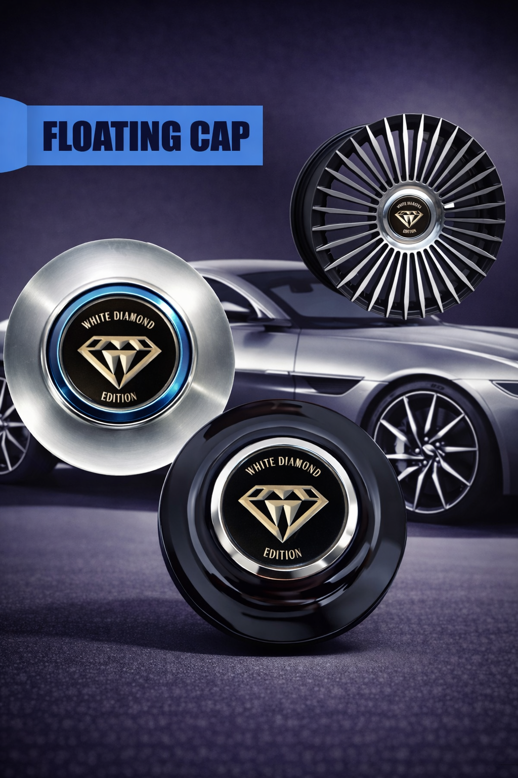 Not only does the Diamond Floating Center Cap 4-Piece Set enhance your vehicle’s visual appeal, but it also adds a layer of protection to the wheel hubs, keeping them from dirt, moisture, and road debris. With a timeless design that complements a variety of wheel styles, this set delivers a seamless blend of form and function, giving your car a standout look that's sure to turn heads wherever you go. Make a statement on the road with these striking, floating diamond caps.